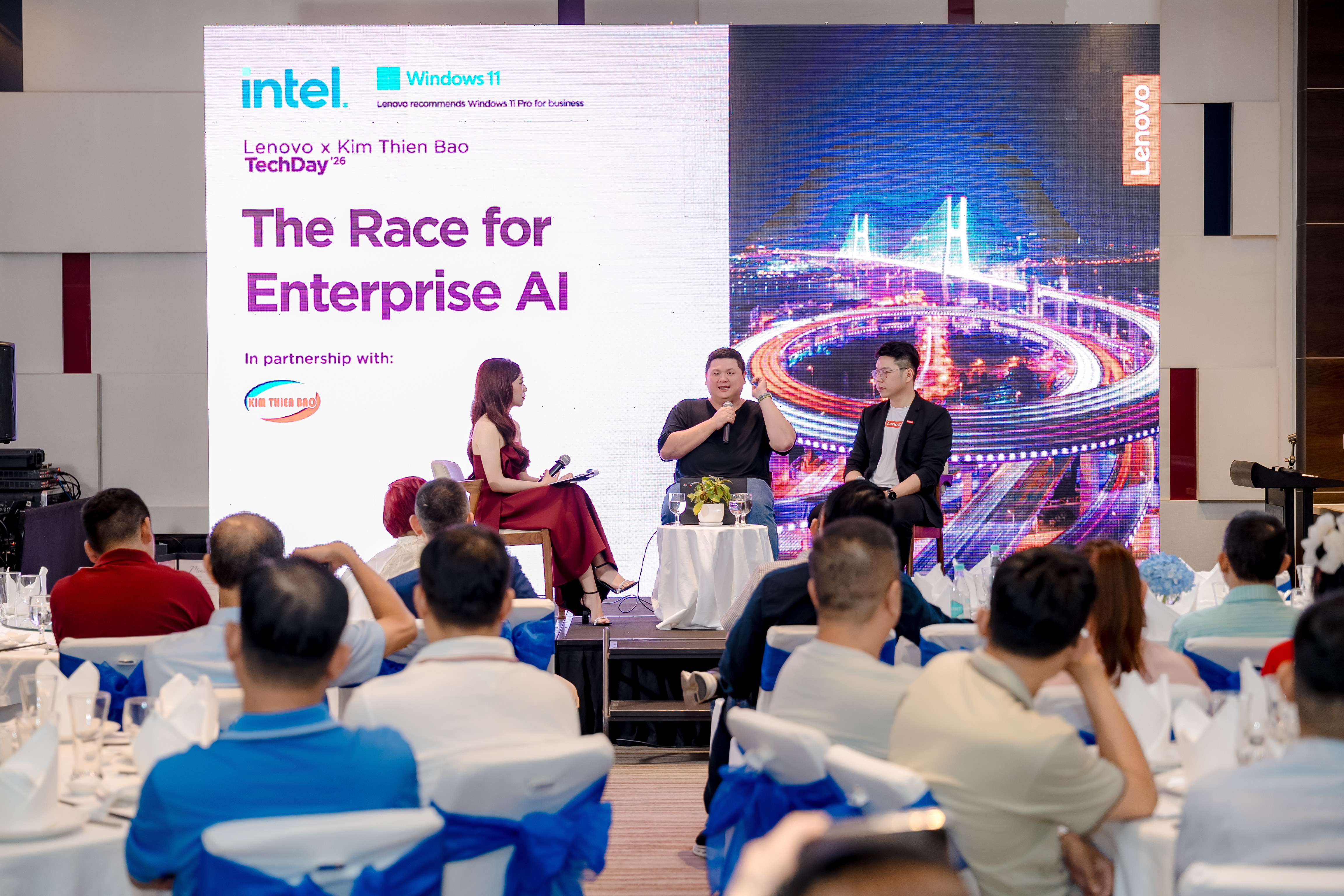 Sự kiện "The Race for Enterprise AI" diễn ra vào ngày 26/03/2026 đã đánh dấu một cột mốc rực rỡ trong mối quan hệ hợp tác chiến lược giữa Kim Thiên Bảo và Lenovo. Trong không gian công nghệ đầy cảm hứng của buổi TechDay, chúng tôi đã cùng nhau khai phá sức mạnh của trí tuệ nhân tạo thông qua các dòng AI PC thế hệ mới nhất, được tối ưu hóa bởi sự đồng hành then chốt từ hai "ông lớn" Intel và Microsoft.