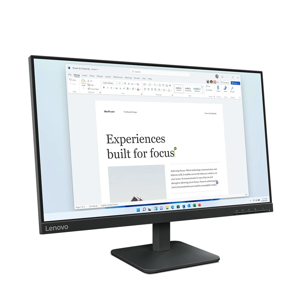 Với độ mỏng chỉ 7.1mm ở phần mỏng nhất, Lenovo L24e-40 trông cực kỳ thanh lịch từ mọi góc nhìn và giúp tiết kiệm không gian hiệu quả.