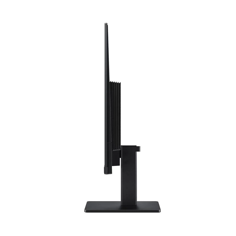 Phần chân đế được thiết kế dạng chữ T ngược, nhỏ gọn nhưng vô cùng chắc chắn, đảm bảo màn hình đứng vững trên mọi mặt phẳng. Tổng thể màn hình được bao phủ bởi tông màu đen tuyền mạnh mẽ, dễ dàng hòa hợp với mọi phong cách nội thất.
